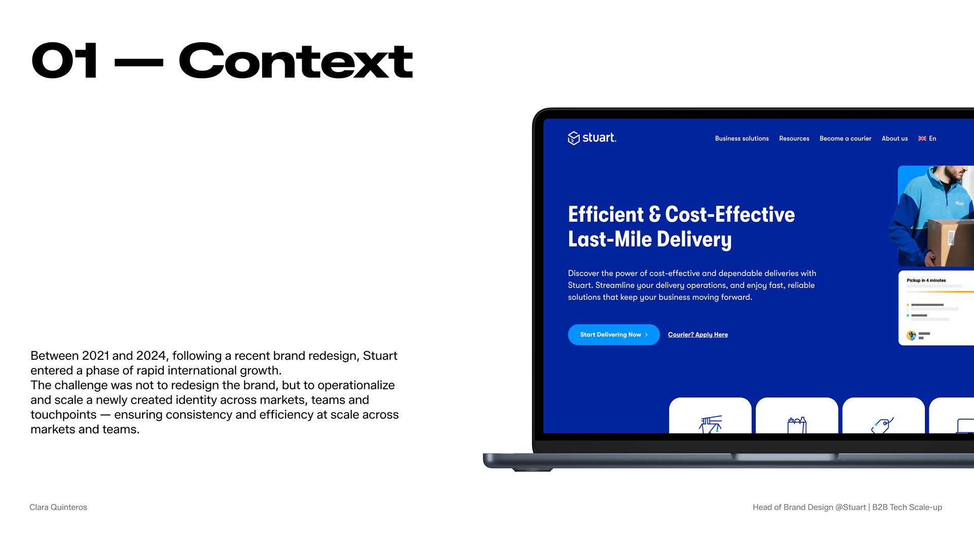 As Head of Brand Design at Stuart (2021–2024), I led the global art direction following a brand redesign and translated the identity into a scalable marketing system.